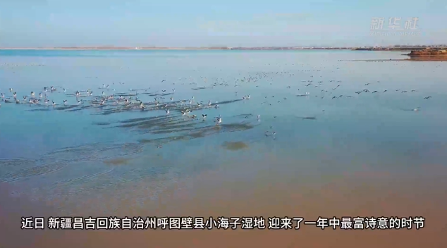 新疆呼图壁县:碧波映金林 万鸟恋湖光