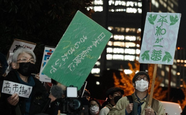 特写丨寒风中,抗议声在日本首相官邸前再次响起