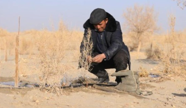 新疆护林员:草方格里锁沙 大漠深处护绿
