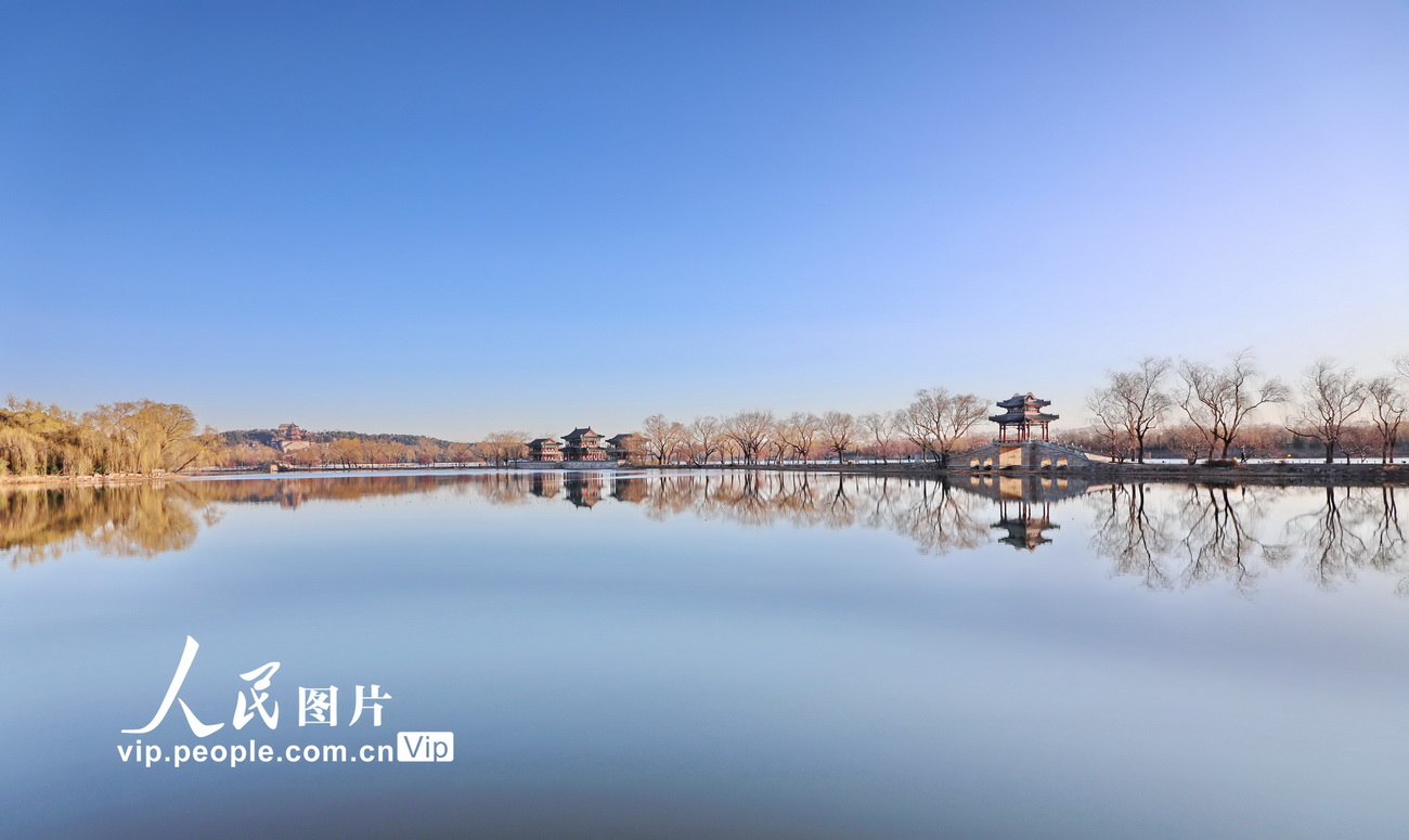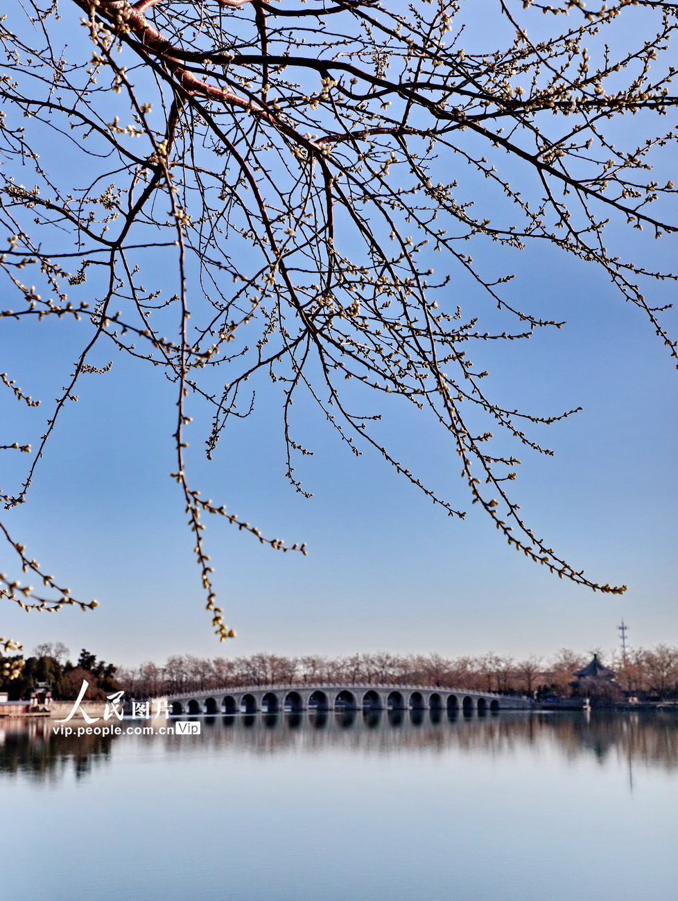 2020年3月13日,北京颐和园昆明湖春光潋滟,西堤岸山桃吐蕊,杨柳依依,水面倒映着初春醉人美景,让人心旷神怡,流连忘返。刘宪国/人民图片