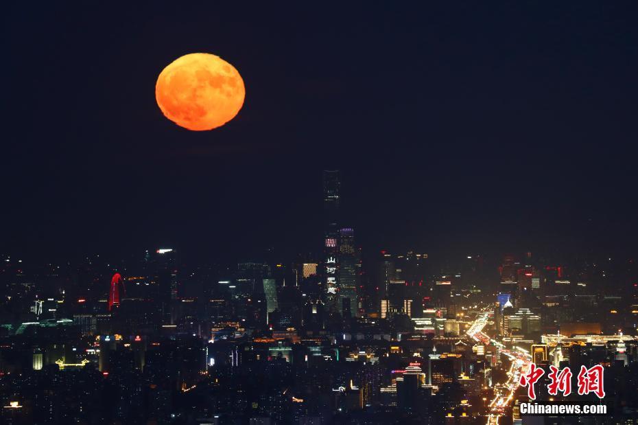 10月2日,中秋国庆假期第二天,北京天气晴好,一轮明月在夜晚逐渐升起。当日是农历八月十六,中国民间有“十五月亮十六圆”的说法。中新社记者 盛佳鹏 摄