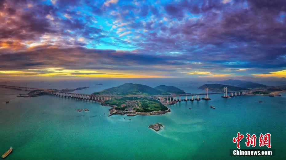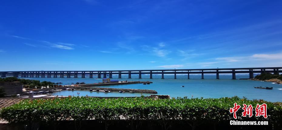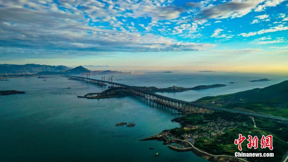 10月2日,平潭海峡公铁两用大桥公路高空全景。 陈颖南 摄