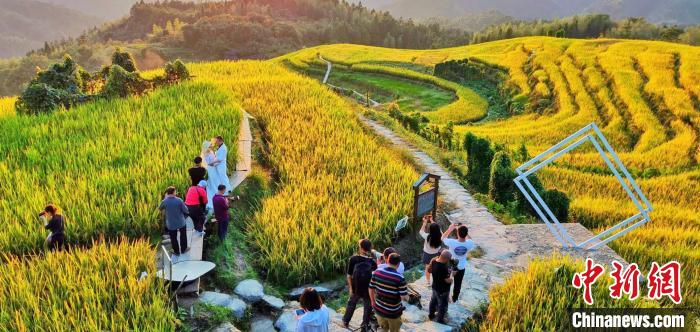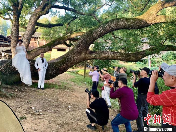 美丽的三楼村成为婚纱摄影拍摄地。 林春 摄