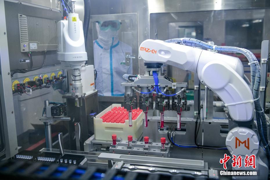 11月23日,诺禾天津医学检验所的工作人员操作自动化样本前处理工作站对天津滨海新区核酸采样进行检测。截至当日15时,天津“滨城大筛”已累计完成采样244.73万份,采样工作已经基本完成。已检测样本233.40万份,检测结果均为阴性。中新社记者 佟郁 摄