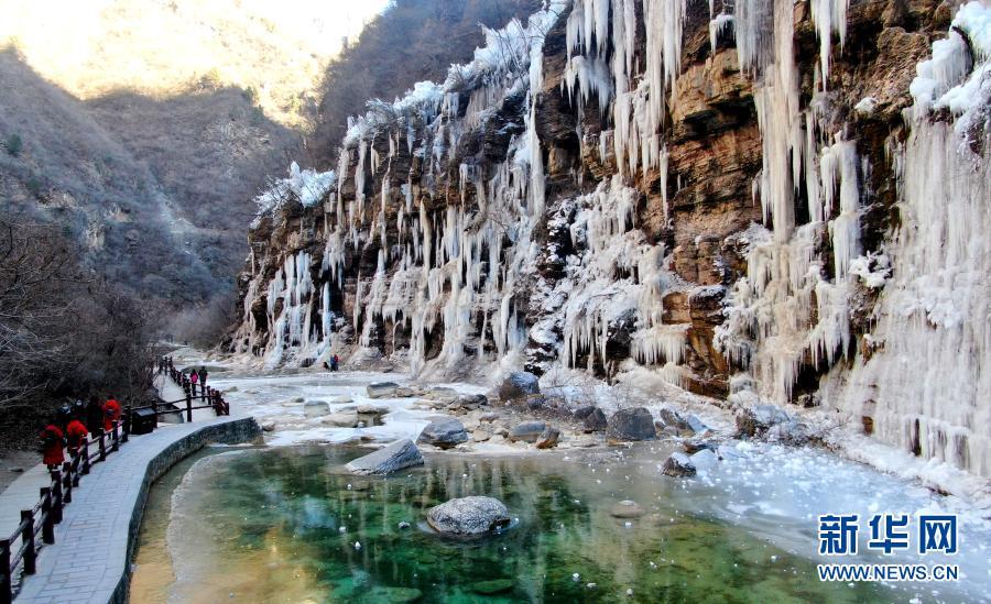 寒冬时节,河南焦作云台山景区形成多处冰瀑景观,吸引众多游客前来观赏。