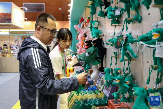 9月21日,与会嘉宾在第八届丝绸之路(敦煌)国际文化博览会上选购非遗文创产品。