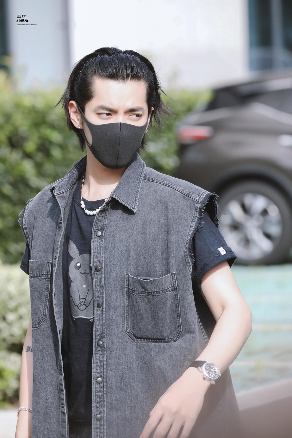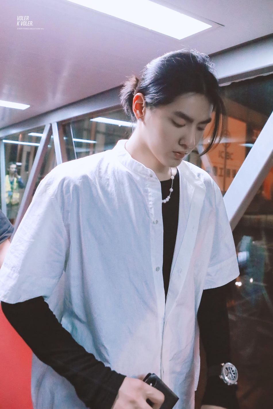 吴亦凡剪头发后现身机场 头戴发箍露额头清爽帅气