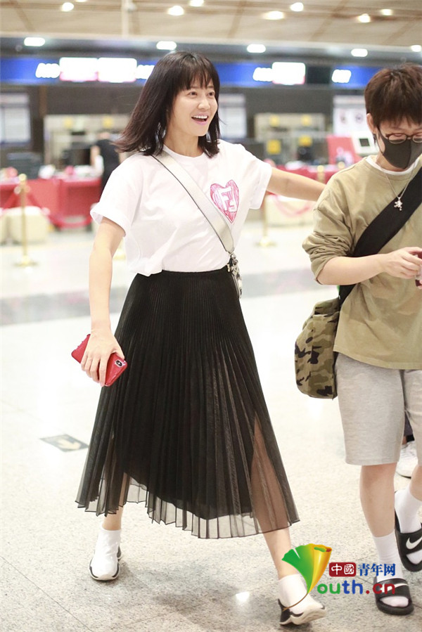 2019年9月17日,北京,谭卓现身机场,出发前往米兰参加2020米兰伦敦时装周。她齐刘海发型青春可爱,和助理笑弯腰无星架挥手秒切大佬范。