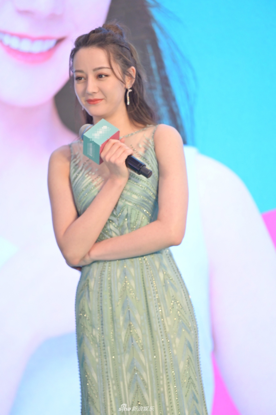 迪丽热巴穿薄荷绿长裙妆容清丽 撒娇卖萌狂吸粉