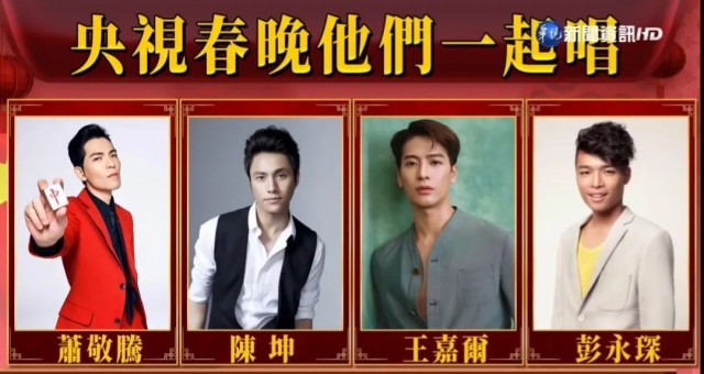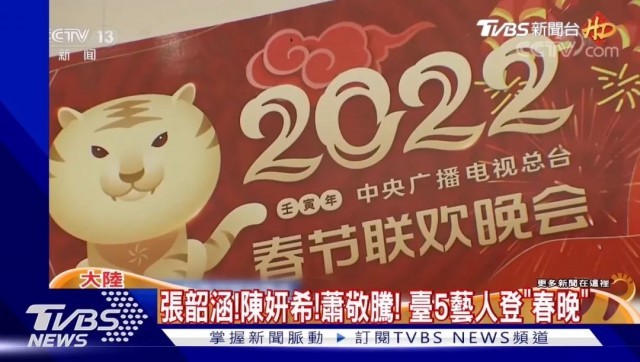 台湾艺人陈妍希、张韶涵、萧敬腾、李立群、杨宗纬登上总台央视春晚,带来了精彩的演出,以新颖别致的文艺精品节目,在喜气洋洋、欢乐吉祥中奉上春节文化大餐。