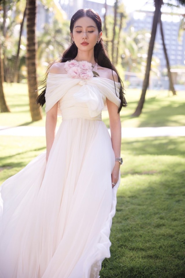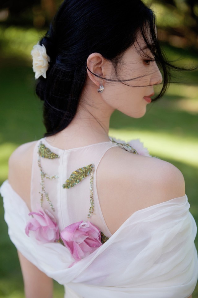 新浪娱乐讯 14日,刘诗诗工作室晒出一组最新造型大片,她一身素雅白裙秀肩颈线条,气质温柔明媚,胸前的花束也尤为点睛。