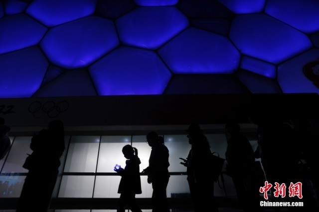 4月2日,是第16个世界孤独症日。国家游泳中心(水立方/冰立方)第十三次为“星星的孩子”点亮蓝灯。图为小朋友排队参加点亮蓝灯仪式。