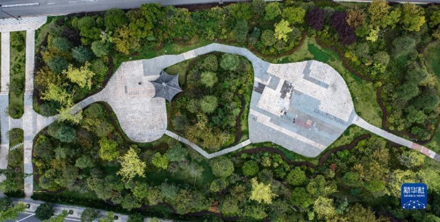 贵阳市云岩区的一处社区公园(8月14日摄,无人机照片)。
