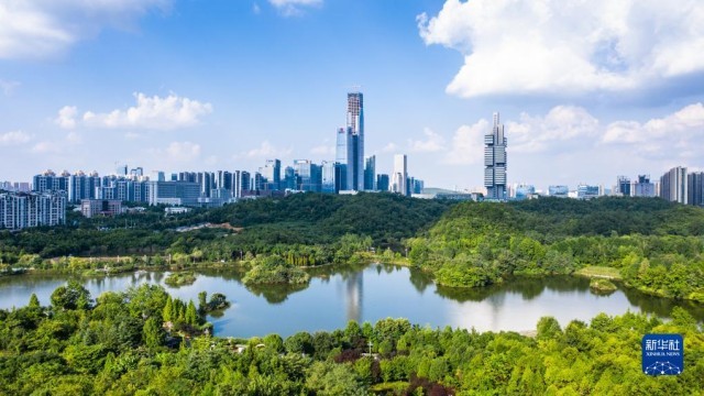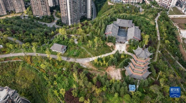 贵阳市云岩区的一处山体公园(8月14日摄,无人机照片)。