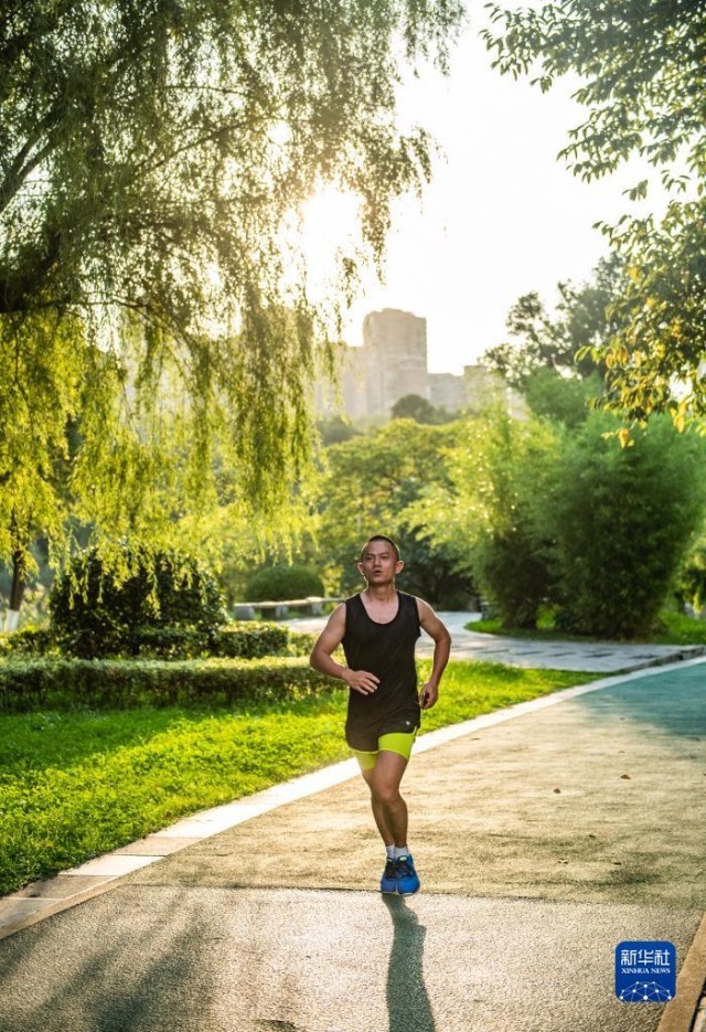 市民在观山湖公园中运动(2020年7月29日摄)。