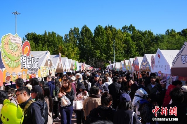 10月19日,北京市,民众在朝阳公园的北京面包节上边逛边吃,休闲度周末。图为北京面包节现场人头攒动。