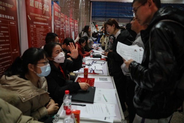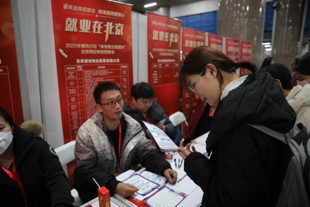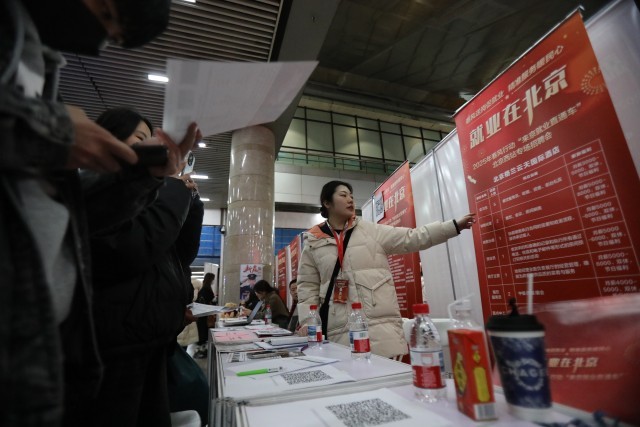 近期正值务工人员返京复工的高峰期,2025年春风行动“来京就业直通车”专场招聘会当日走进北京西站,近百家企业提供包括市场策划、景区运营管理师、家政、安保等在内的3000余个岗位,不仅让刚下火车的旅客实现“出站即求职”,还吸引了许多北京市内的求职者特地赶来参加。中青报·中青网记者 孔斯琪/摄