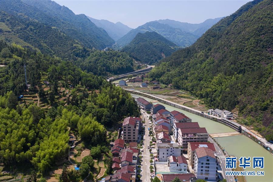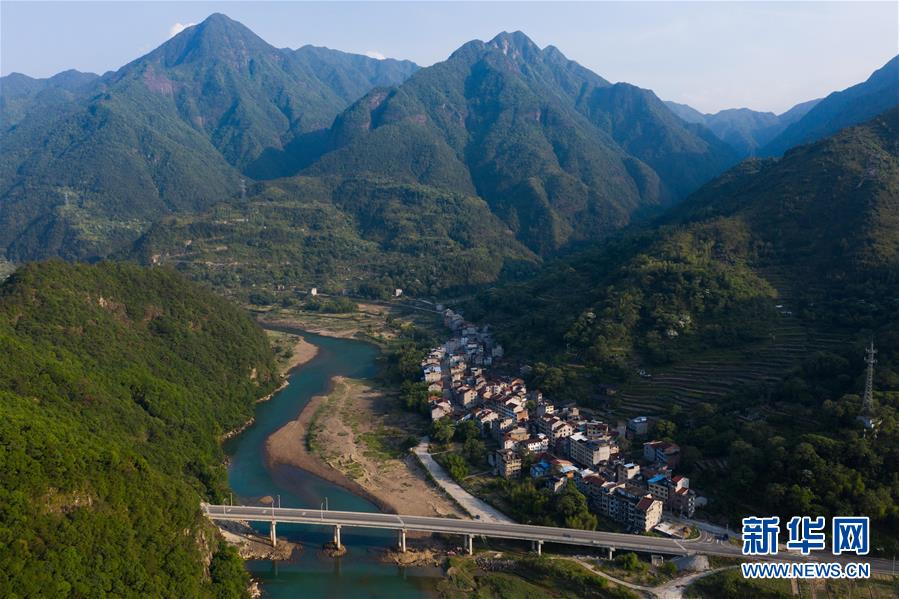 5月13日拍摄的青田县汤垟乡(无人机照片)。该乡依山傍水,通过美丽城镇建设全面提升了乡村环境。 新华社记者 徐昱 摄