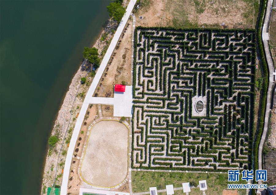 5月13日拍摄的青田县仁庄镇黄岩垟村青都乐园的绿植迷宫(无人机照片)。该乡村乐园是利用当地一座废弃砖窑厂改建的,乐园保留了砖窑厂的主体建筑,在原来的基础上进行改造,成为了当地乡村旅游的“金名片”。 新华社记者 徐昱 摄