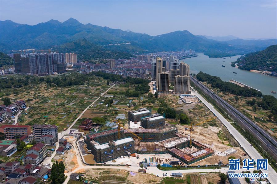 5月13日拍摄的青田县温溪镇正在建设中的第五小学(无人机照片)。温溪镇第五小学迁建工程是温溪镇美丽城镇建设的重点工程,竣工后将服务温溪片区“一镇三乡”,提升该片区教育现代化水平。 新华社记者 徐昱 摄
