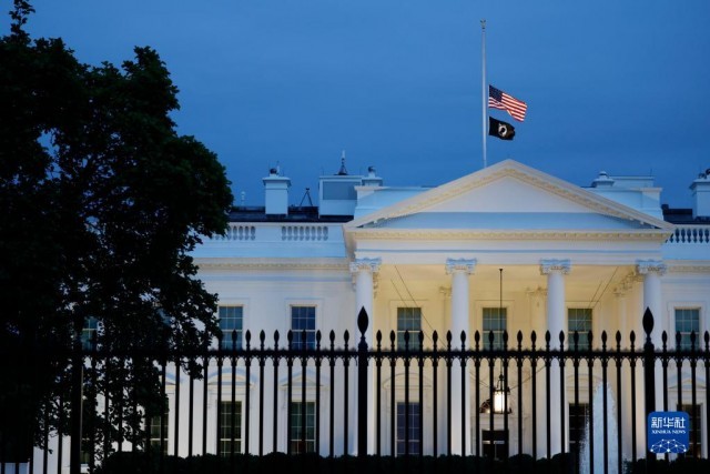 5月24日,在美国首都华盛顿,白宫降半旗向得克萨斯州枪击事件受害者致哀。当天,得克萨斯州南部尤瓦尔迪市一所小学发生枪击事件,造成至少19名儿童和2名教师死亡。