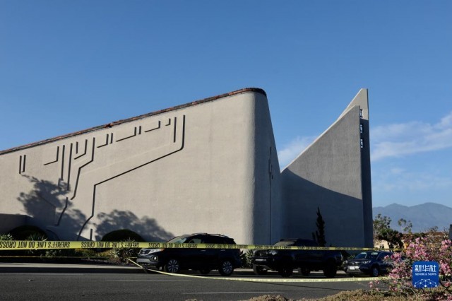 5月15日,美国加利福尼亚州奥兰治县发生枪击事件的教堂被警方封锁。当天,加利福尼亚州奥兰治县一个教堂发生枪击事件,造成1人死亡、5人受伤。