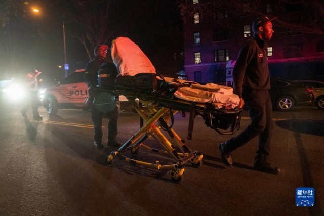 4月22日,在美国首都华盛顿,救护人员在枪击事件现场工作。当天,首都华盛顿西北部一处街区发生一起枪击事件,造成4人受伤,枪手随后自杀。警察在枪手住所找到6支枪及弹药等。