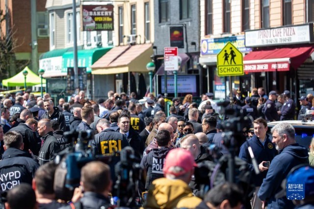 4月12日,警察和调查人员在美国纽约发生枪击的地铁站附近工作。当天,纽约市布鲁克林区一地铁站发生枪击事件,造成20多人受伤。警方说,嫌疑人先扔出两枚烟幕弹,然后用手枪对地铁乘客射击,打伤10人。另有十余人因吸入烟雾、跌倒等原因受伤。