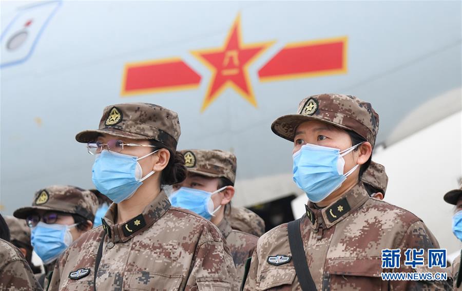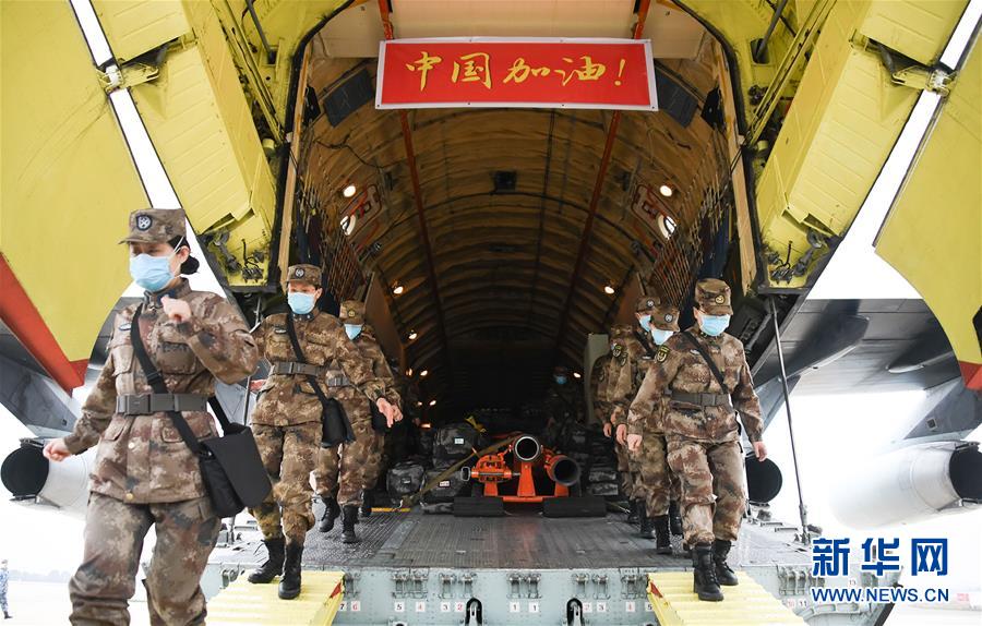 2月2日,空军出动8架大型运输机空运军队支援湖北医疗队抵达武汉天河机场。新华社发(李世宁 摄)