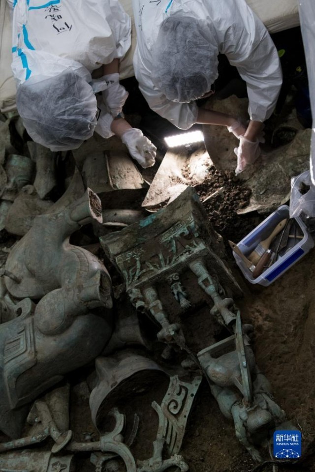 目前三星堆3、4号“祭祀坑”已结束野外发掘,5、6号“祭祀坑”正在开展埋藏文物的室内清理,此次公布的文物主要集中在7、8号“祭祀坑”。