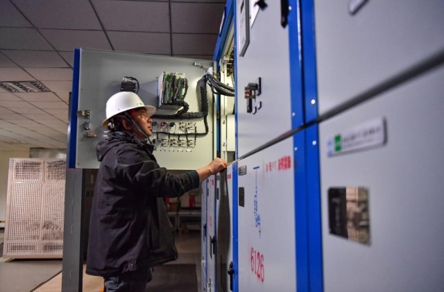 羊易地热电站工作人员在检查凝结水泵运行情况(4月6日摄)。
