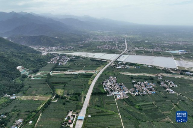 秦岭北麓脚下的西安市鄠邑区石井街道蔡家坡村(8月16日摄,无人机照片)。