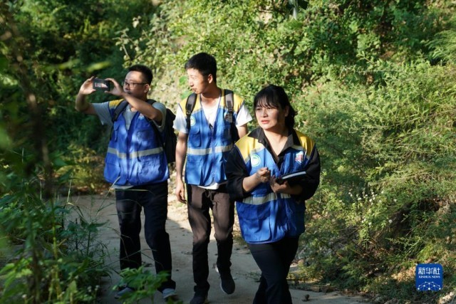 8月29日,西安市长安区秦岭保护局的专职网格员在秦岭北麓一处峪口外巡山。