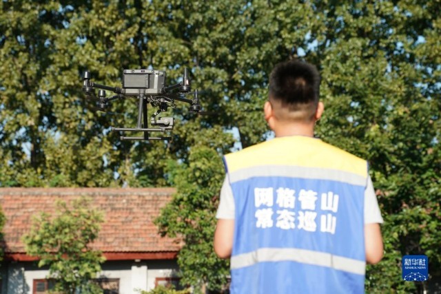 8月29日,西安市长安区沣峪国有生态林场的工作人员操纵无人机巡山。