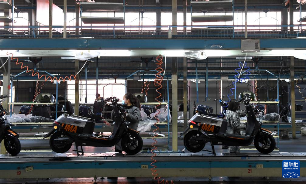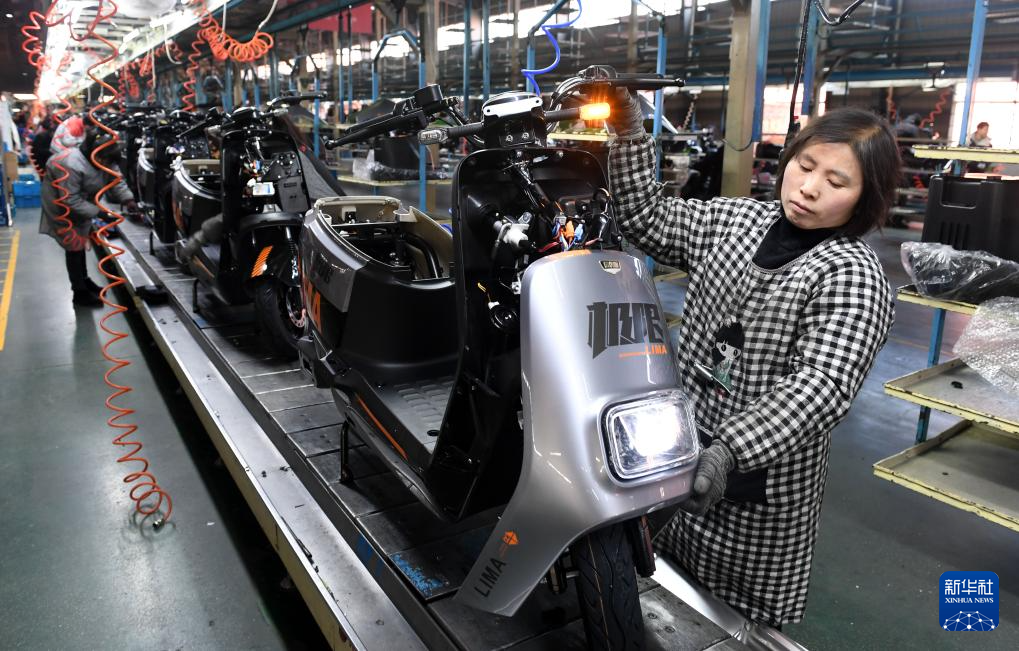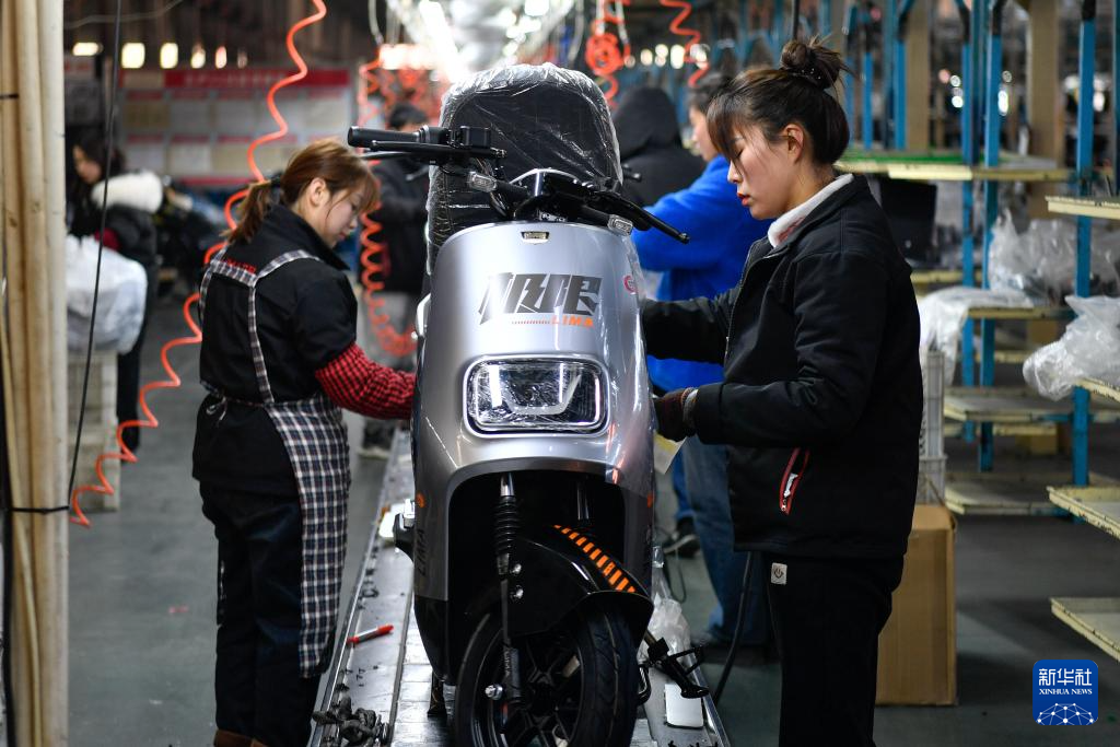 1月24日,工人在河南省汝南县立马新能源电动车产业园生产线上组装车辆。近年来,汝南县转型升级传统产业,引进培育新兴产业,注重打造新能源低速电动车、锂电产业等特色产业,助推经济高质量发展。