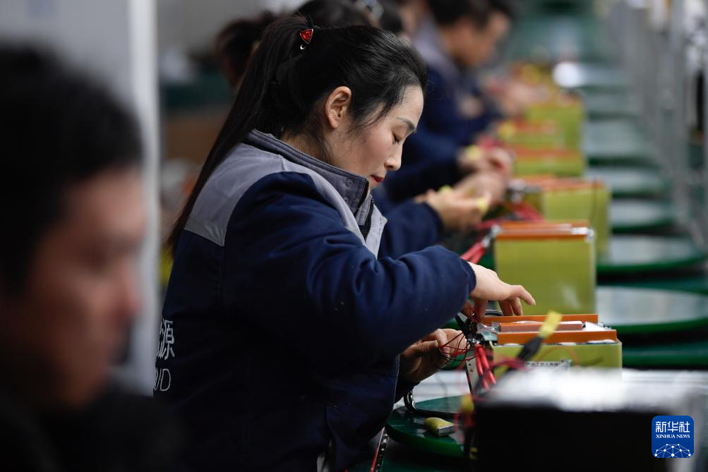 1月24日,在河南省汝南县锂电产业园伏特新能源科技有限公司,工人在车间内作业。近年来,汝南县转型升级传统产业,引进培育新兴产业,注重打造新能源低速电动车、锂电产业等特色产业,助推经济高质量发展。