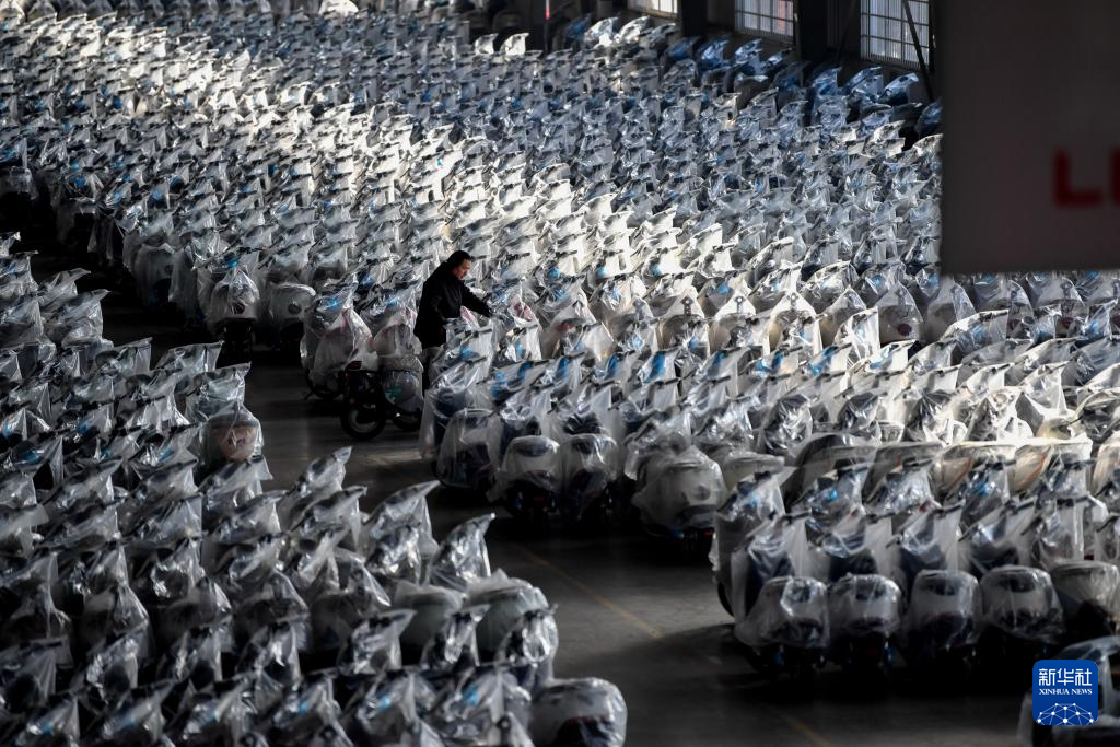 1月24日,工人在河南省汝南县立马新能源电动车产业园内摆放车辆。近年来,汝南县转型升级传统产业,引进培育新兴产业,注重打造新能源低速电动车、锂电产业等特色产业,助推经济高质量发展。