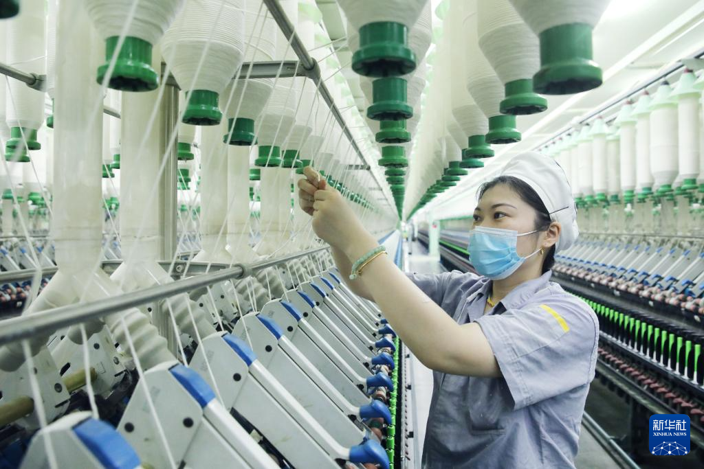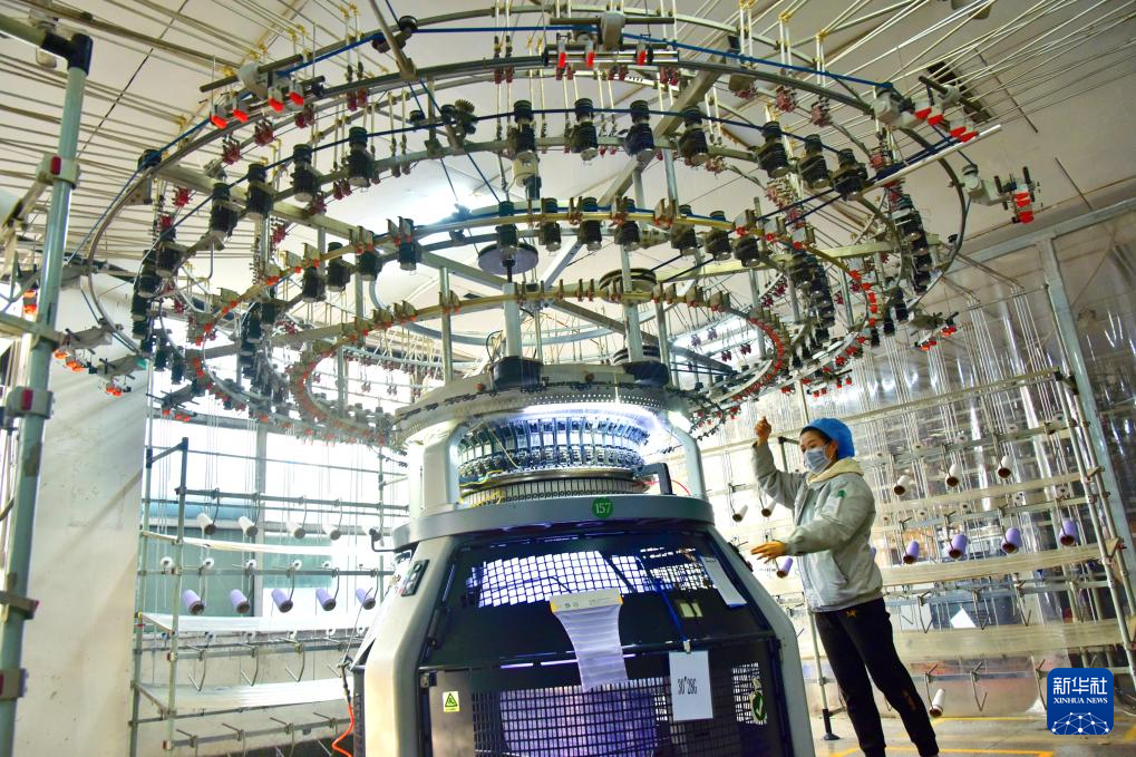 1月24日,在河南省开封市尉氏县一家纺织企业,工人在车间内忙碌。