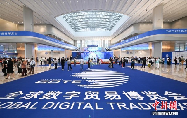 9月25日,民众参观数贸会中国馆。当日,以“数字贸易商通全球”为主题的第三届全球数字贸易博览会在浙江杭州开幕。本届数贸会总规模达15万平方米,设置1个综合展区和8个特色数字产业展区,32个国家和地区超1500家企业参展,国际企业参展数量和面积占比均超20%。