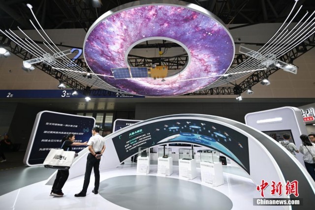 9月25日,参观者驻足了解为通信、导航、遥感等卫星提供天基计算服务的设备和技术。当日,以“数字贸易商通全球”为主题的第三届全球数字贸易博览会在浙江杭州开幕,悉数亮相的各类数字科技产品吸引参观者。
