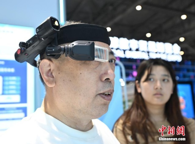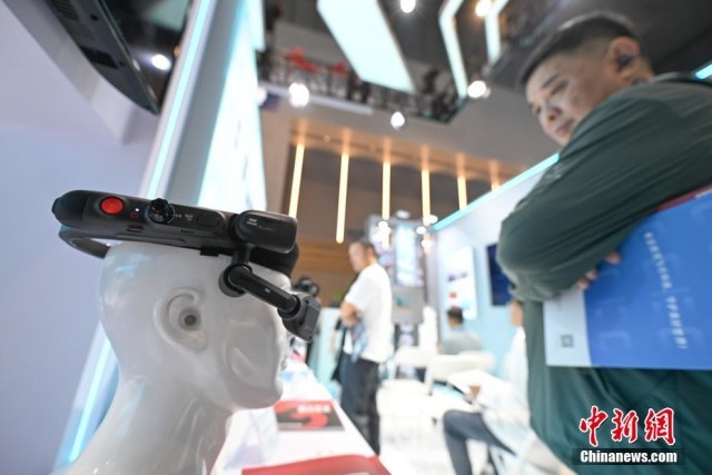 9月25日,可植入AI大模型、辅助判断决策的AR眼镜吸引参观者。当日,以“数字贸易商通全球”为主题的第三届全球数字贸易博览会在浙江杭州开幕,悉数亮相的各类数字科技产品吸引参观者。