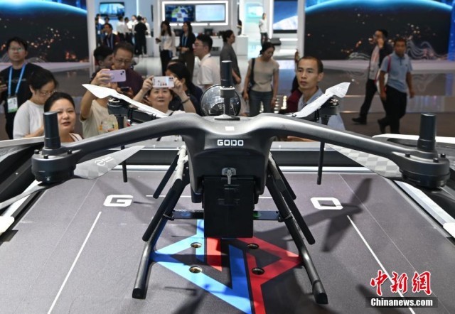 9月25日,展出的智能巡检无人机吸引参观者。当日,以“数字贸易商通全球”为主题的第三届全球数字贸易博览会在浙江杭州开幕,悉数亮相的各类数字科技产品吸引参观者。