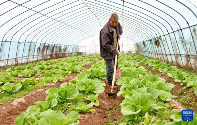 1月20日,在浙江省台州市仙居县官路镇,菜农在大棚中为蔬菜松土、除草。