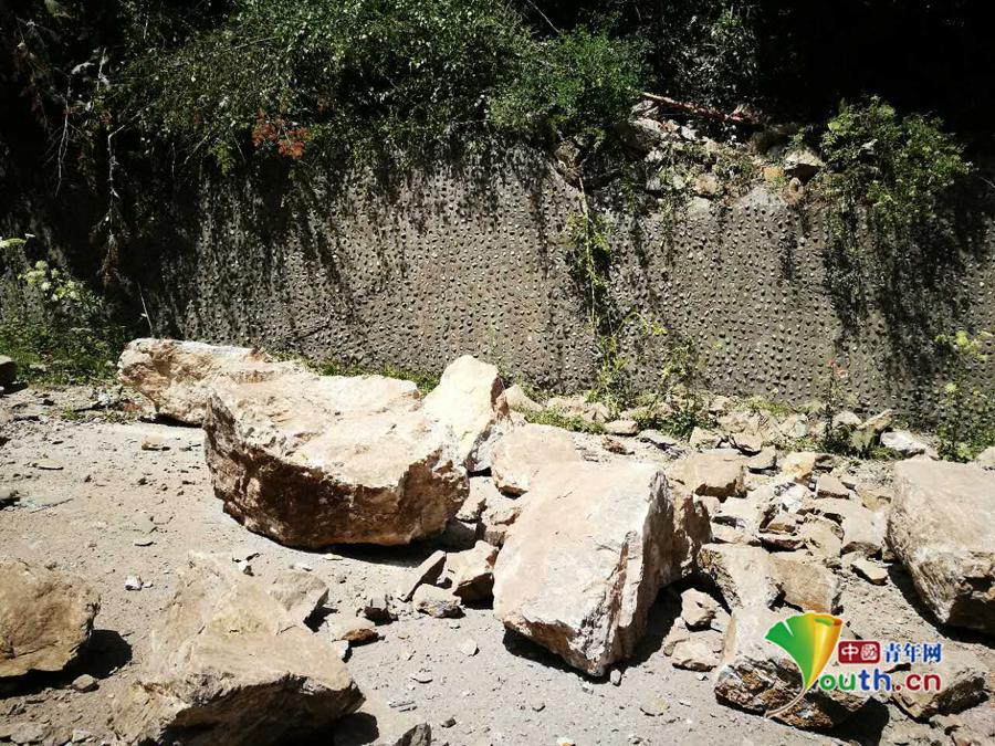 滚落在路边的石头。中国青年网通讯员 蔡必维 摄