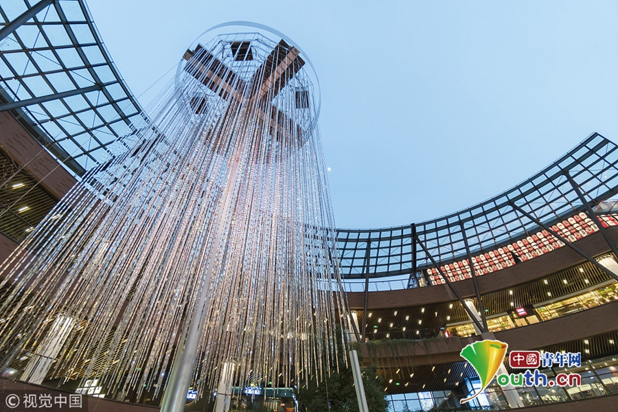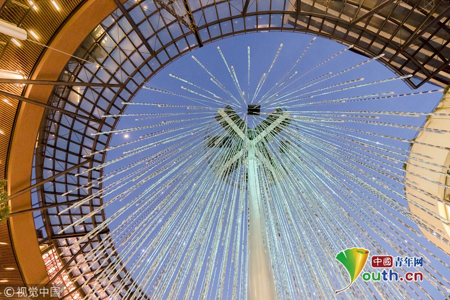 据悉,“水晶烟花”由日本的新媒体艺术团队打造,是一个高达14米的巨型艺术装置,该装置通过挂灯的排列组合,形成一个巨大的立方体,采用立体LED技术打造而成三次元“水晶”烟花。作为“2017光影上海”系列展览之一,在18年3月份前,“水晶烟花”每晚5点至10点都将准时点亮。
