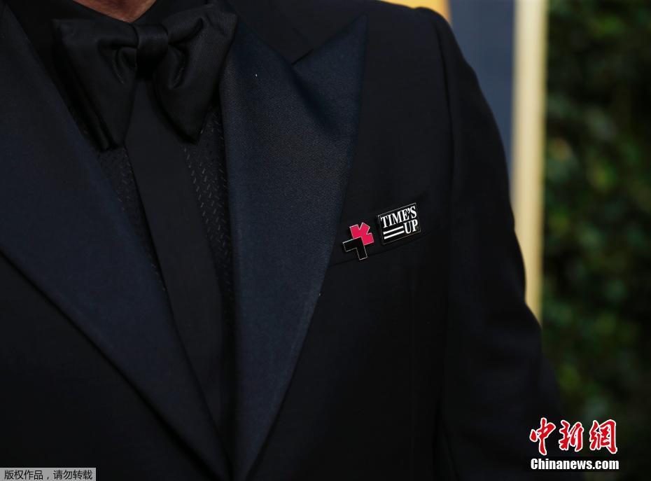 自去年10月爆出好莱坞著名制片人哈维·韦恩斯坦(Harvey Weinstein)长年性侵女性事件后,好莱坞就掀起了“整风运动”。300多名女性影视业者发起了“该停止了”公益捐款,号召大家集资,帮助那些在职场上受到性侵的女性打官司。图为一名参会嘉宾的礼服上戴着“该停止了”字样的胸针。