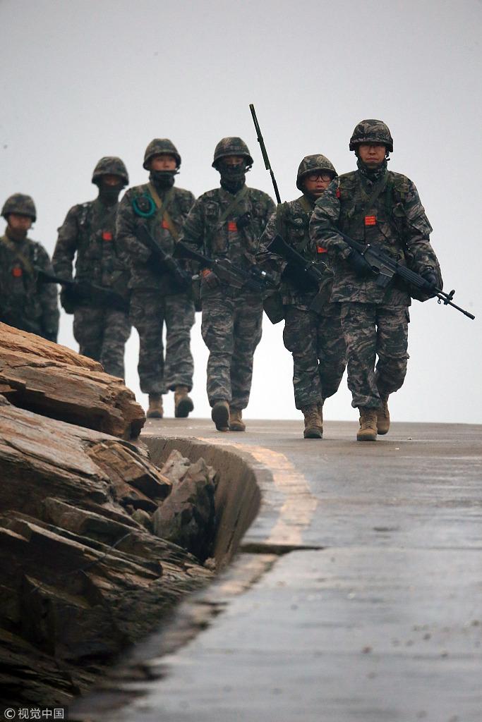 延坪岛事件4周年前夕,韩国海军陆战队沿海侦查。(视觉中国)