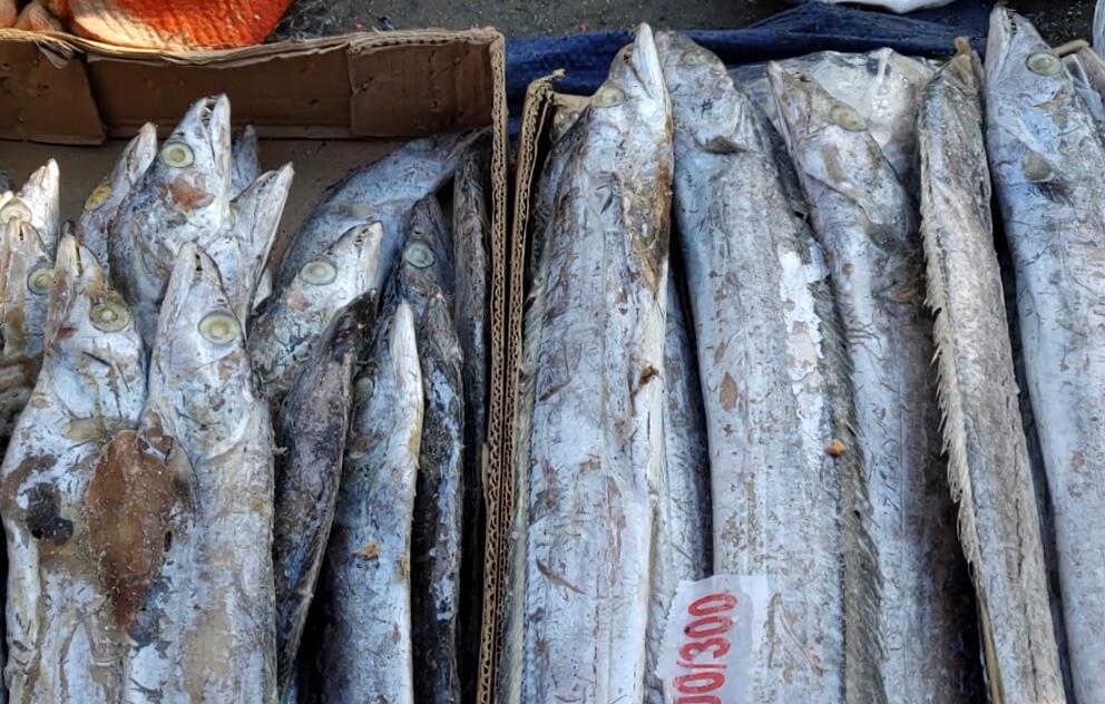 东北大集上的天然冷冻年货。视频截图