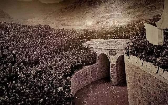 1959年10月,为了改变“连年干旱、禾枯、绝收”的状况,河南林县县委决定“引漳入林”,“只要能把水引过来,苦干没问题!”动员令通过广播和报纸传遍全县。1960年元宵节当天,3.7万修渠大军扛着工具,挑着行李,推着锅灶,开向了修渠第一线,“千军万马战太行”。