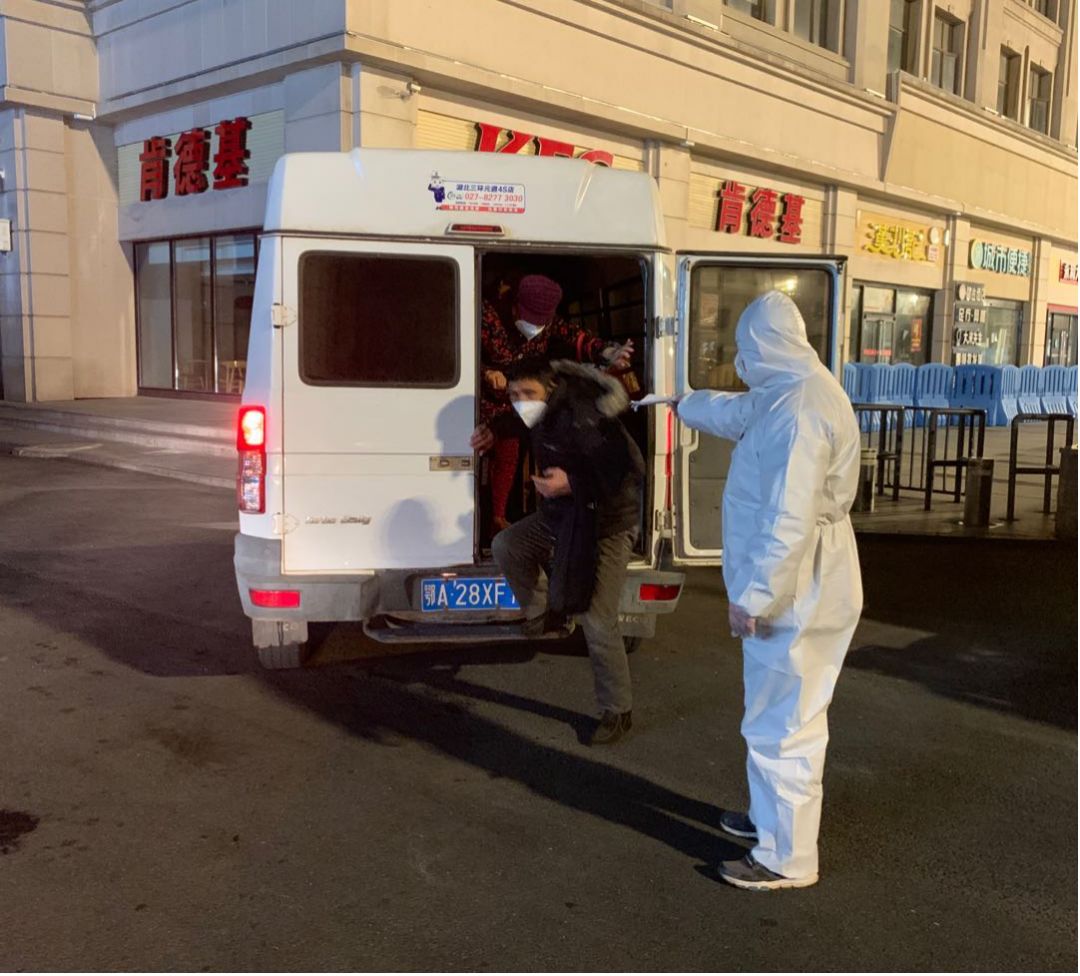 将两名患者送至地点后,已是下午1点半左右。不曾想,该酒店收治条件不足,拒绝接受,而两个婆婆没吃早饭到现在已处于低血糖状态,人又滞留在酒店门口。鄂焕斌赶紧将两个婆婆扶下车,找地方休息,告知现状原因,安抚她们情绪。经过多次协调,最终2个婆婆转送至万松园振华大楼,此时已14时50分,距离最终诊断约3个小时。